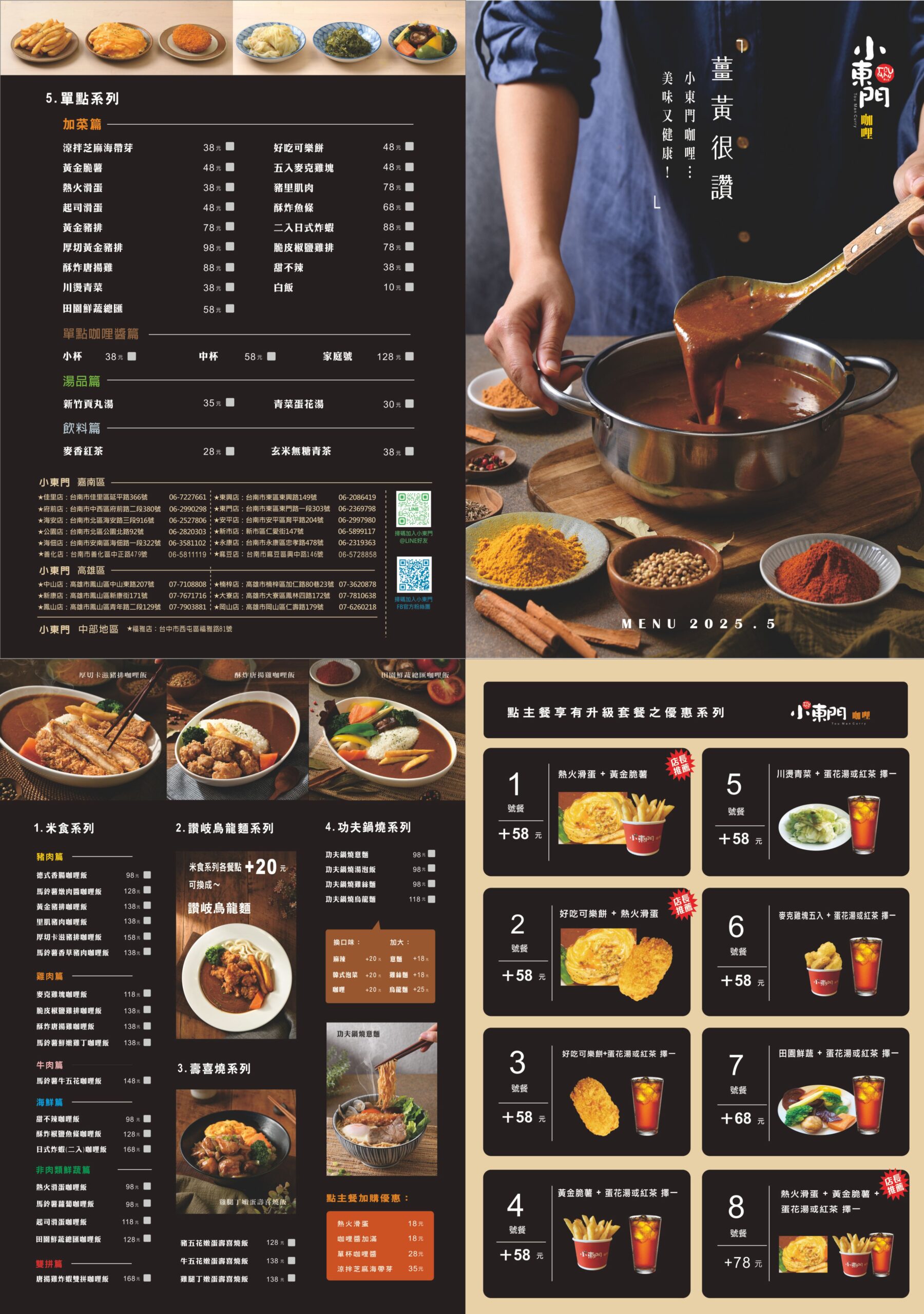 各門市資訊 找一間離你最近的小東門咖哩現場濃郁香氣等你光臨 搜尋 台中市 台南市 新竹縣 高雄市 全部縣市 新竹縣/竹北市 竹北中正東店 新竹縣竹北市中正東路235號 03 656 0368 菜單 高雄市/鳳山區 高雄鳳山青年店 高雄市鳳山區青年路二段129號 07 790 3881 菜單 高雄市/鳳山區 高雄鳳山新康店 高雄市鳳山區新康街171號 07 767 1716 菜單 大寮區/高雄市 高雄大寮店 高雄市大寮區鳳林四路172號 07 781 0638 菜單 高雄市/鳳山區 高雄鳳山中山店 高雄市鳳山區中山東路207號 07 710 8808 菜單 岡山區/高雄市 高雄岡山店 高雄市岡山區仁壽路179號 07 626 0218 菜單 北區/台南市 台南公園店 台南市北區公園北路92號 06 2820303 菜單 台南市/麻豆區 台南麻豆店 台南市麻豆區興中路146號 06 572 8858 菜單 台南市/安南區 台南海佃店 台南市安南區海佃路一段322號 06 3581102 菜單 佳里區/台南市 台南佳里店 台南市佳里區延平路366號 06 7227661 菜單 台南市/善化區 台南善化店 台南市善化區中正路479號 06 581 1119 菜單 台南市/新市區 台南新市店 台南市新市區仁愛街147號 06 5899117 菜單 楠梓區/高雄市 高雄楠梓加仁店 高雄市楠梓區加仁路80巷23號 07 363 0630 菜單 台中市/西屯區 台中中科福雅店 台中市西屯區福林里福雅路81號 04 2465 3888 菜單 北區/台南市 台南海安店 台南市北區海安路三段916號 06 2527806 菜單 台南市/永康區 台南永康忠孝店 台南市永康區忠孝路478號 06 2319363 菜單 中西區/台南市 台南府前店 台南市中西區府前路二段380號 06 2990298 菜單 台南市/安平區 台南安平店 台南市安平區育平路204號 06 2997980 菜單 台南市/東區 台南凱旋東興店 台南市東區東興路149號 06 2086419 菜單 台南市/東區 台南東門店 台南市東區東門路一段303號 06 236 9798 菜單