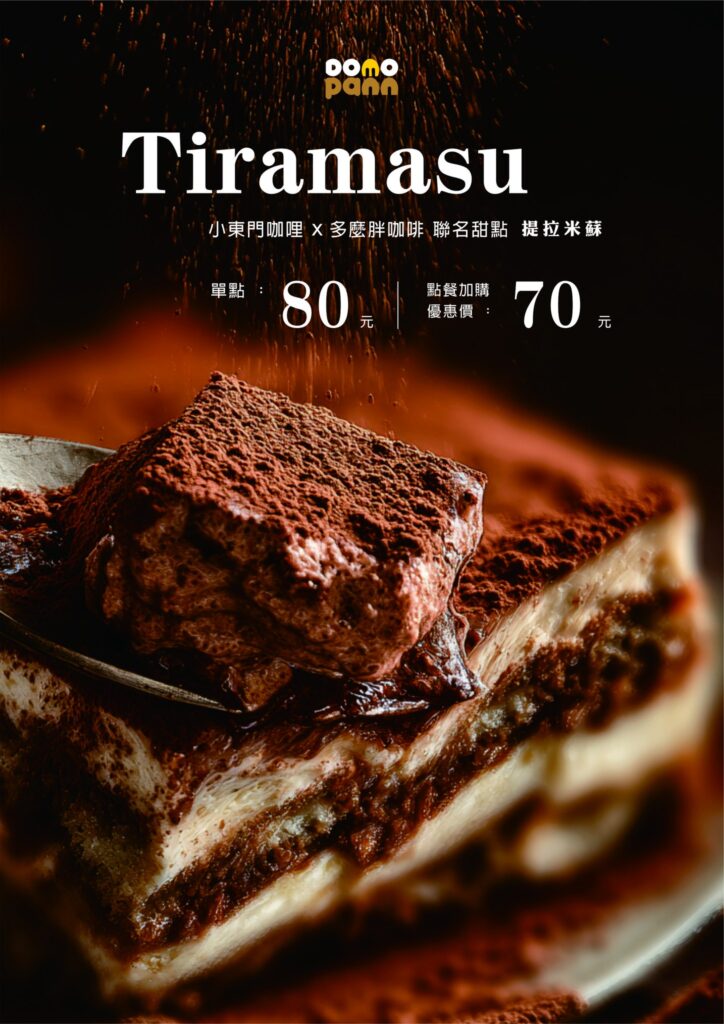 咖哩主餐 + 提拉米蘇加購價 70 元(原價 80 元)