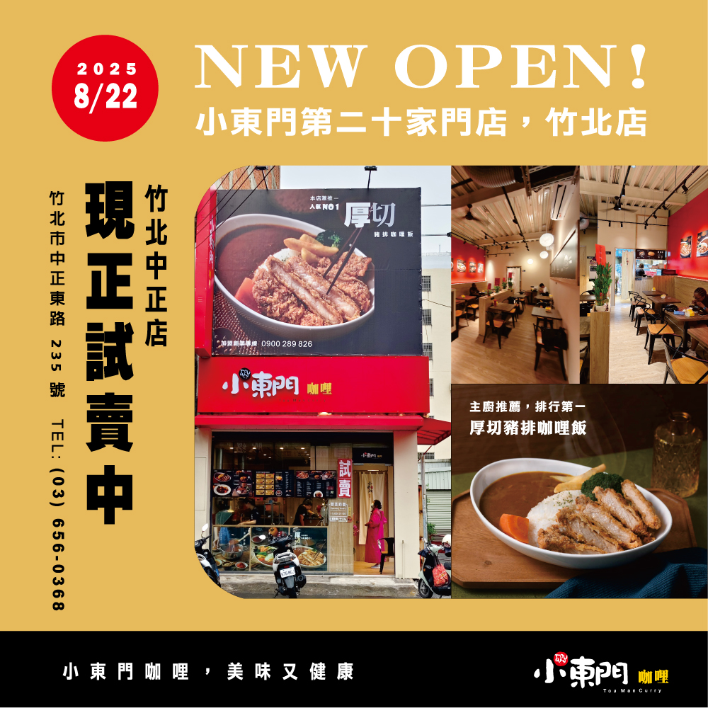 小東門第20間店,新竹竹北店,8/22 正式開幕。
